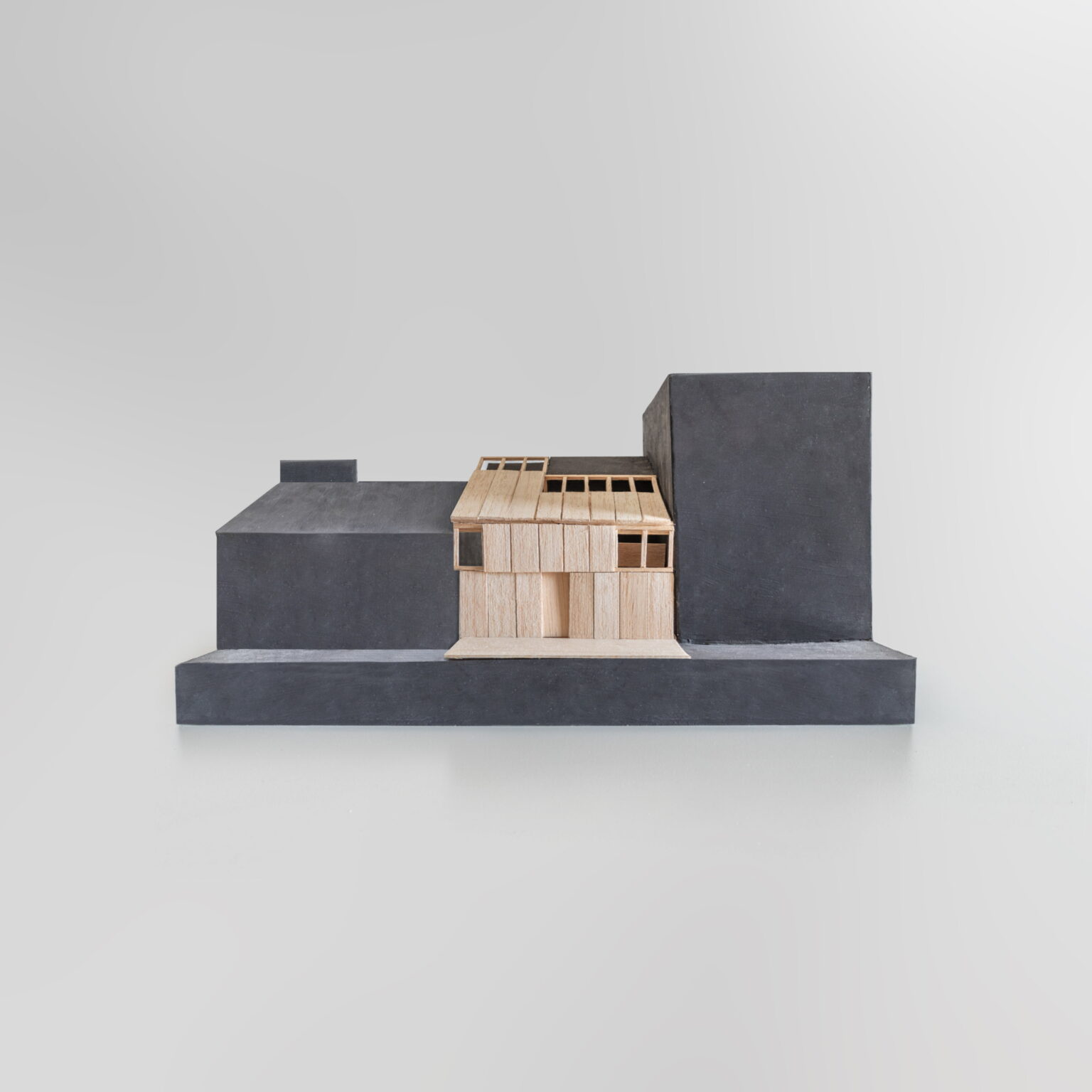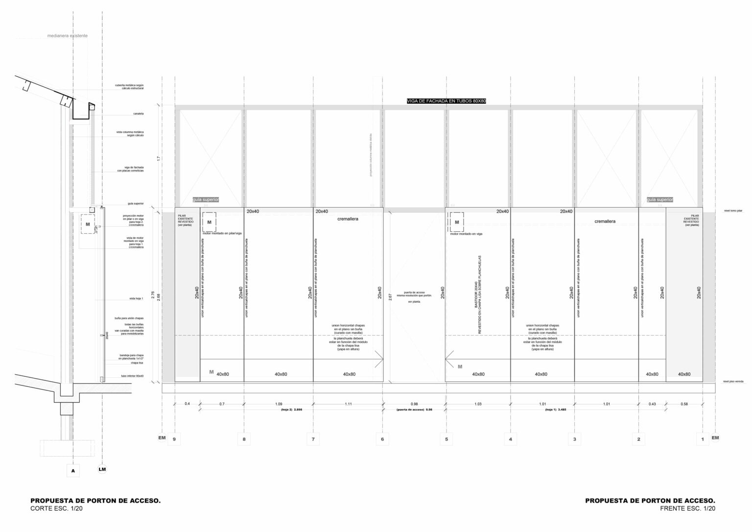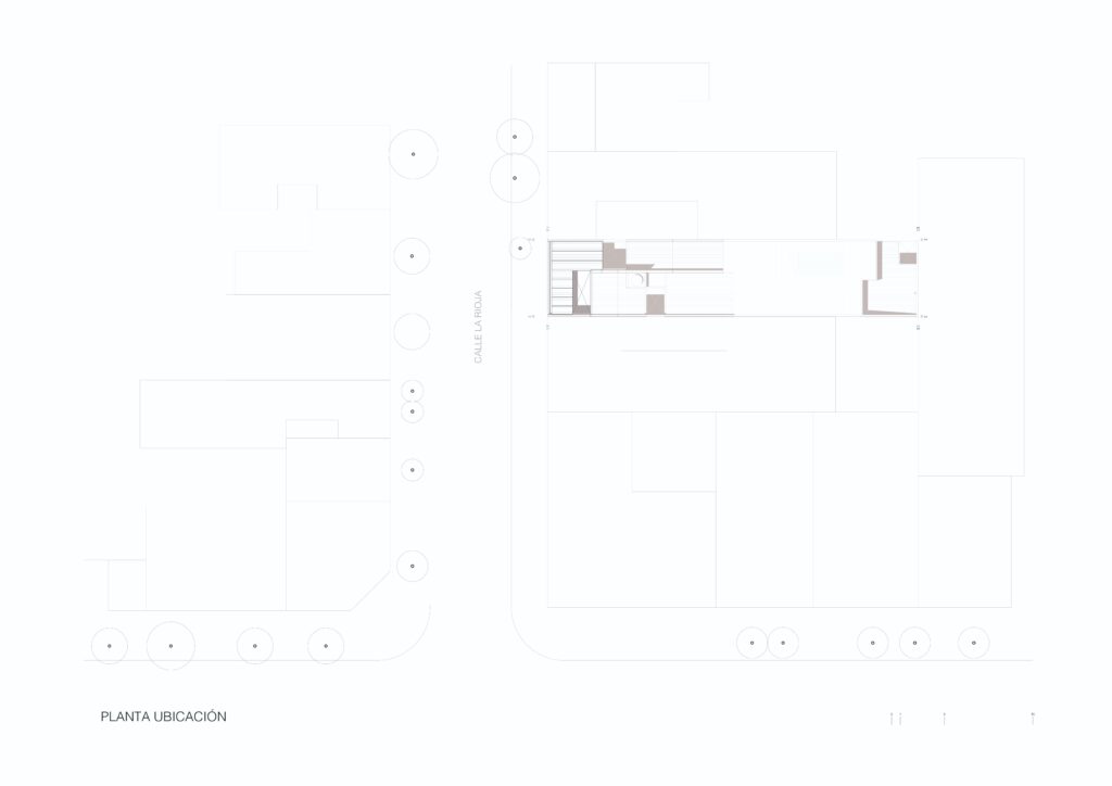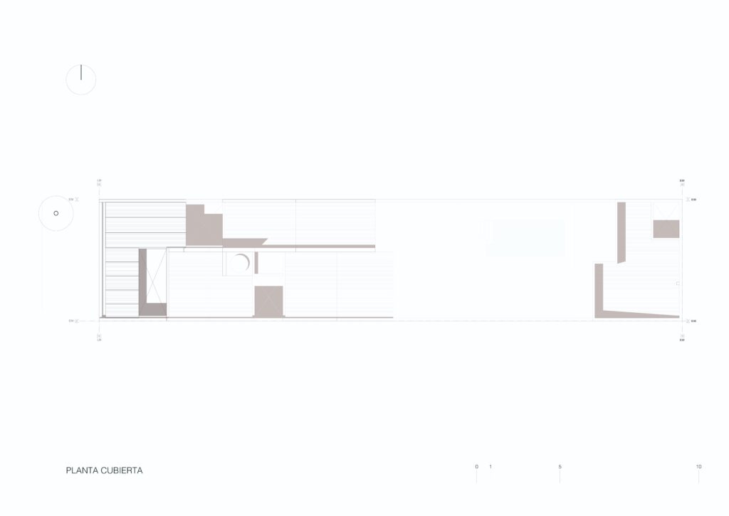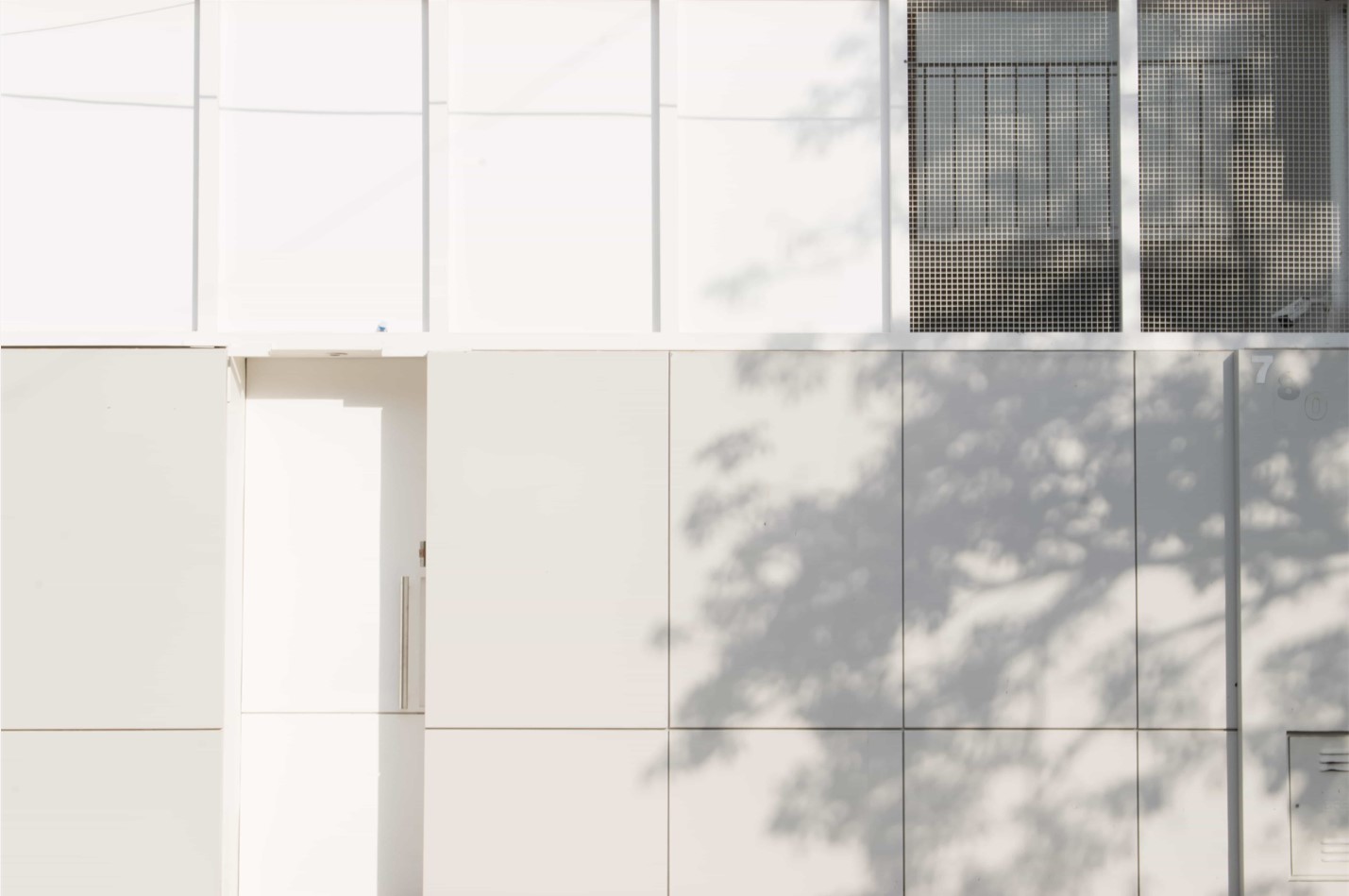 El encargo pedía seguridad y un espacio de cochera para una vivienda urbana entre medianeras. La casa tenía un retiro sobre el que los linderos han avanzado. Todos los espacios comunes que alguna vez ventilaron al espacio urbano estaban contundentemente cerrados y este entraba de manera nociva. Propusimos cubrir el frente con una estructura metálica liviana que resuelve en un gesto cubierta y fachada, que produce un patio-frente techado controlado del clima. Las perforaciones permiten la incorporación de luz en punto estratégicos y su reflexión al interior de la casa.