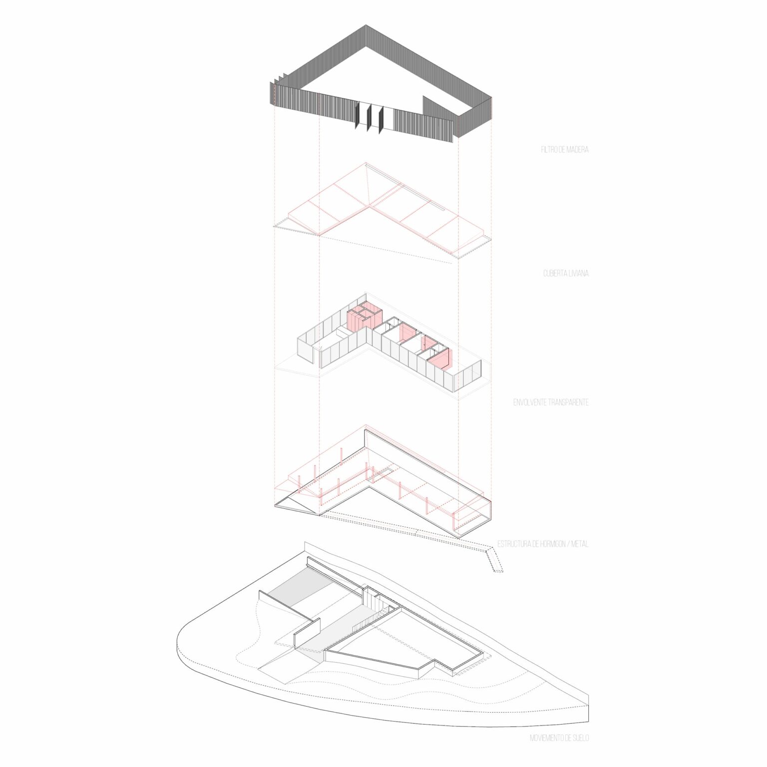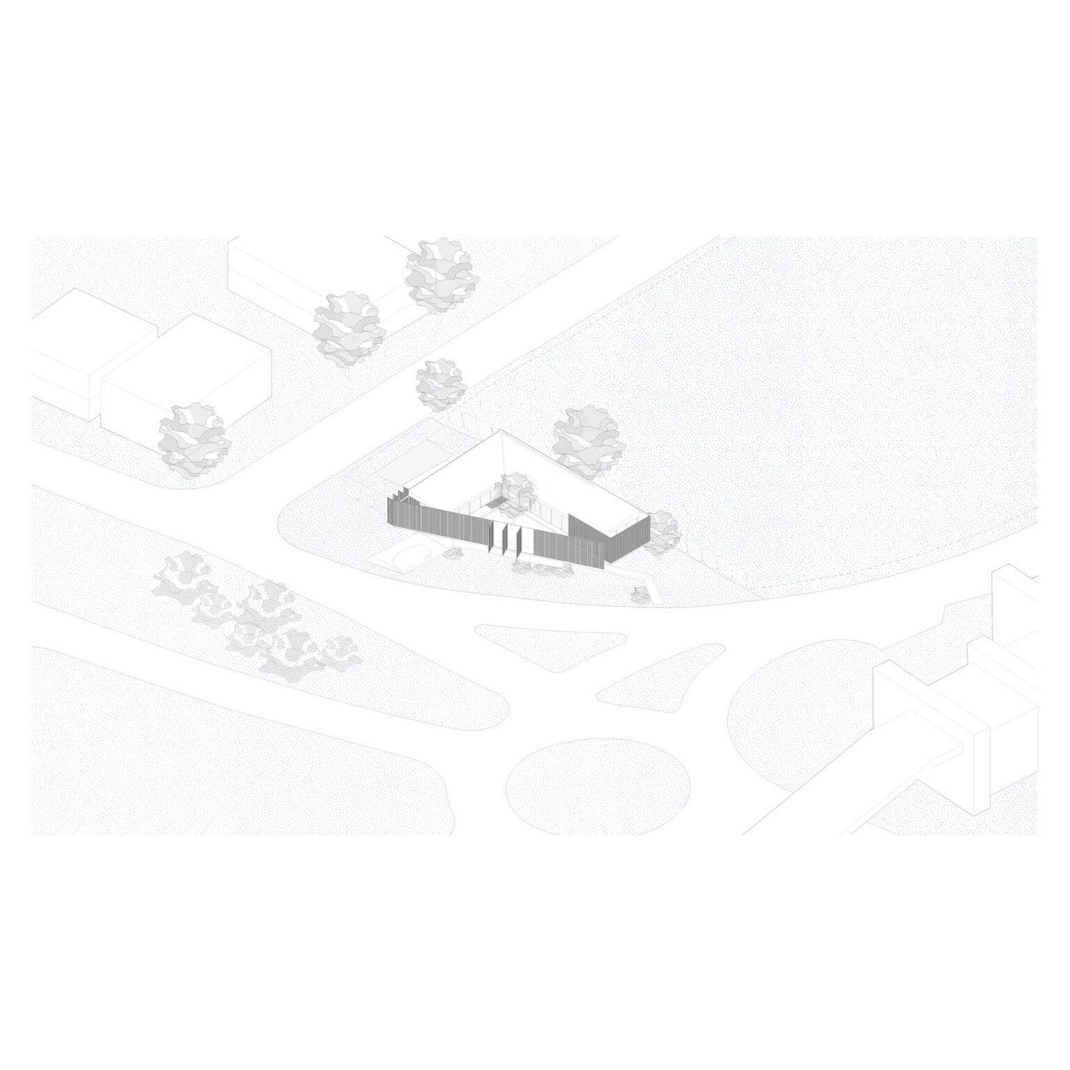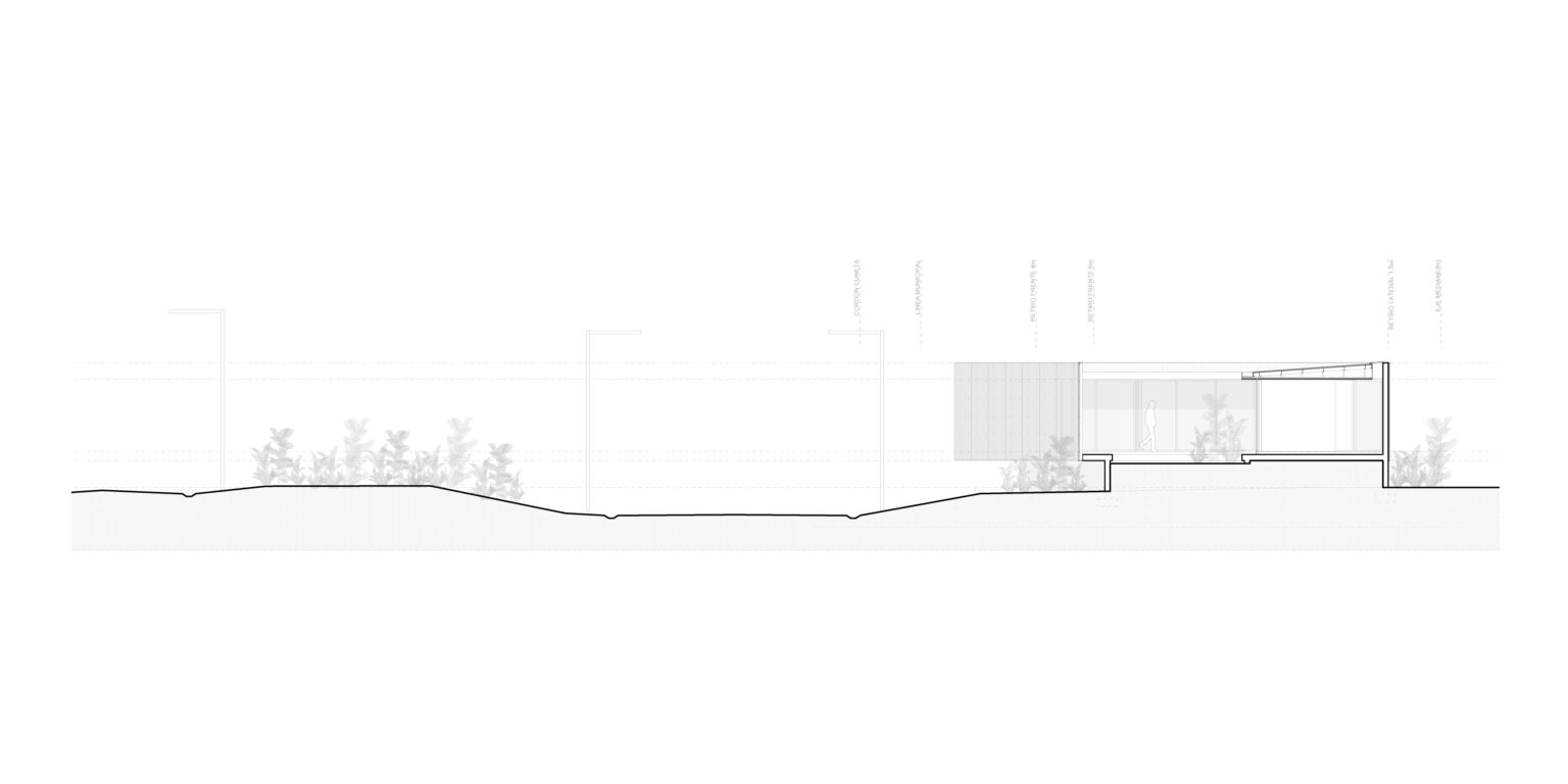 Una pieza abstracta, muda, de escala contenida, sobreelevada del terreno.