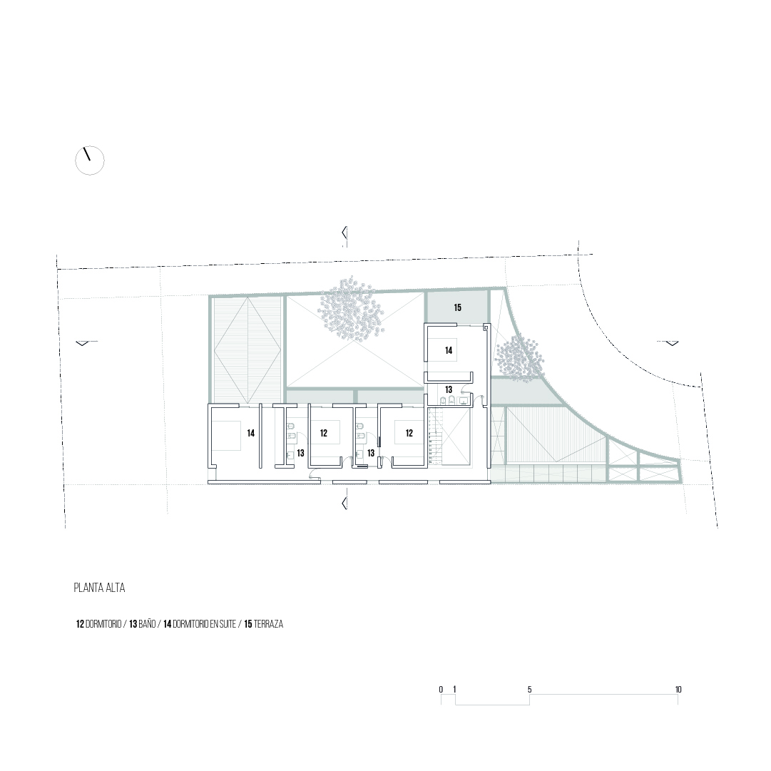 El programa se organiza en 2 niveles, ubicando el área social y de servicio en la planta baja y el área privada que consta de 3 dormitorios y una suite principal en planta alta. Todos los ambientes buscan la conexión al norte, que ofrece las mejores condiciones climáticas.