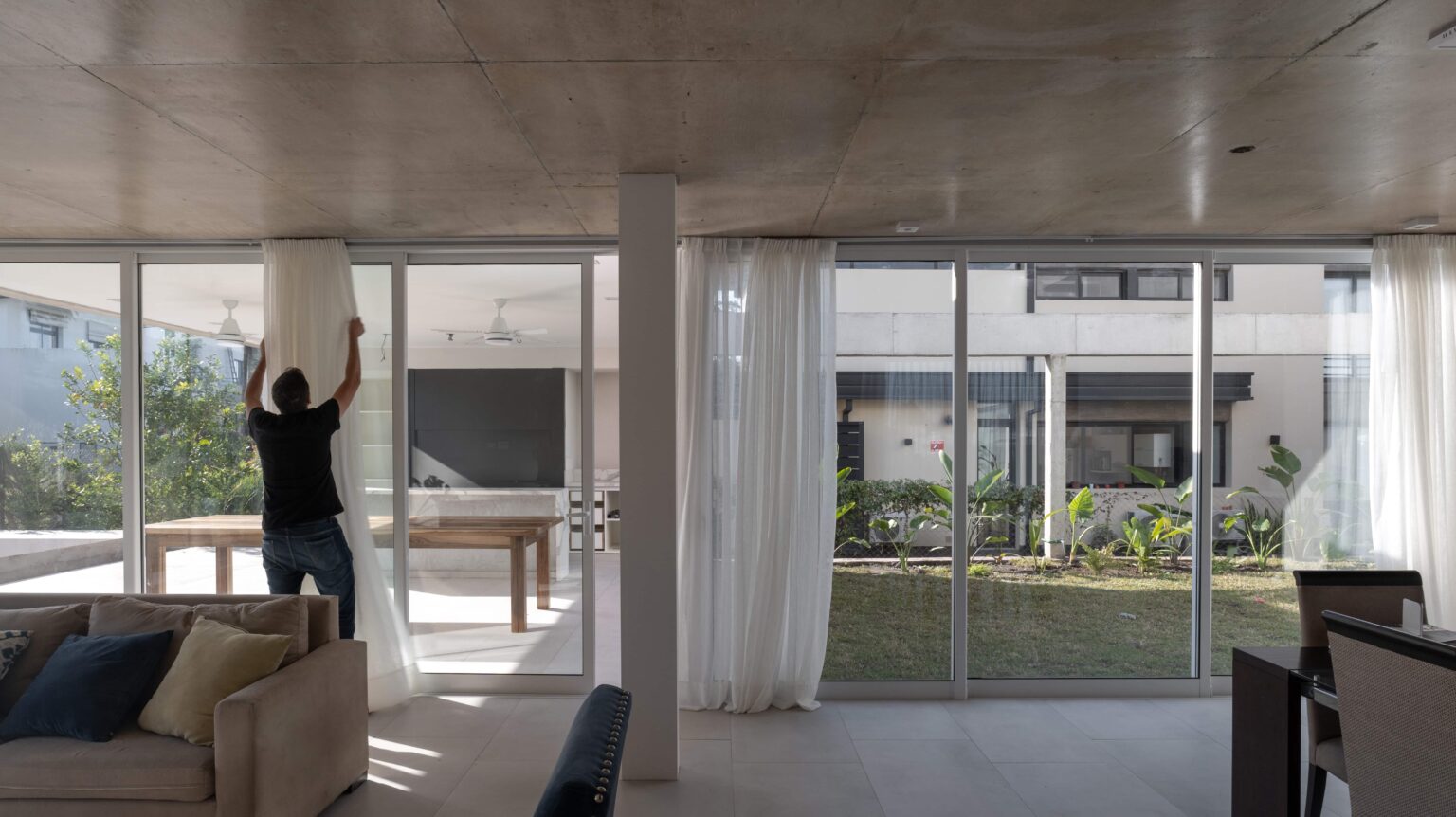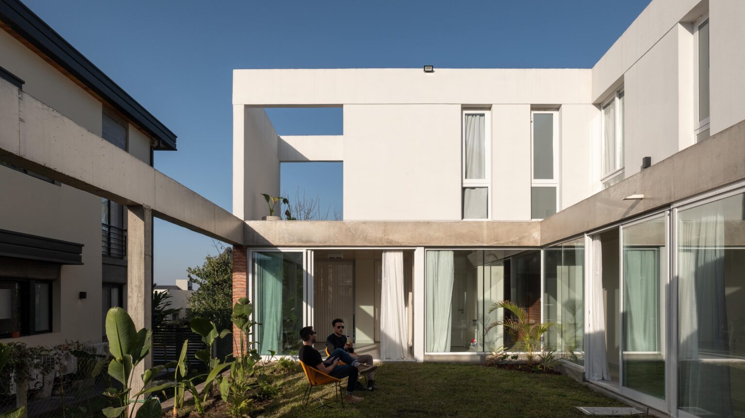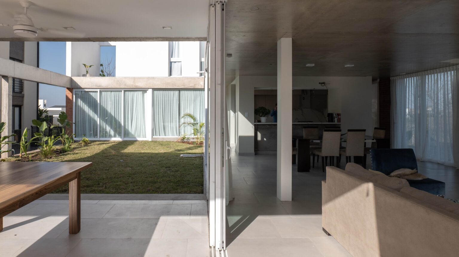 Se plantea una casa que mira hacia adentro y construye su propio microclima de intimidad. Se proyecta a partir de un basamento cerámico cuyo objetivo principal es abrazar y contener la edificación, y que funciona como filtro otorgando privacidad hacia el interior.